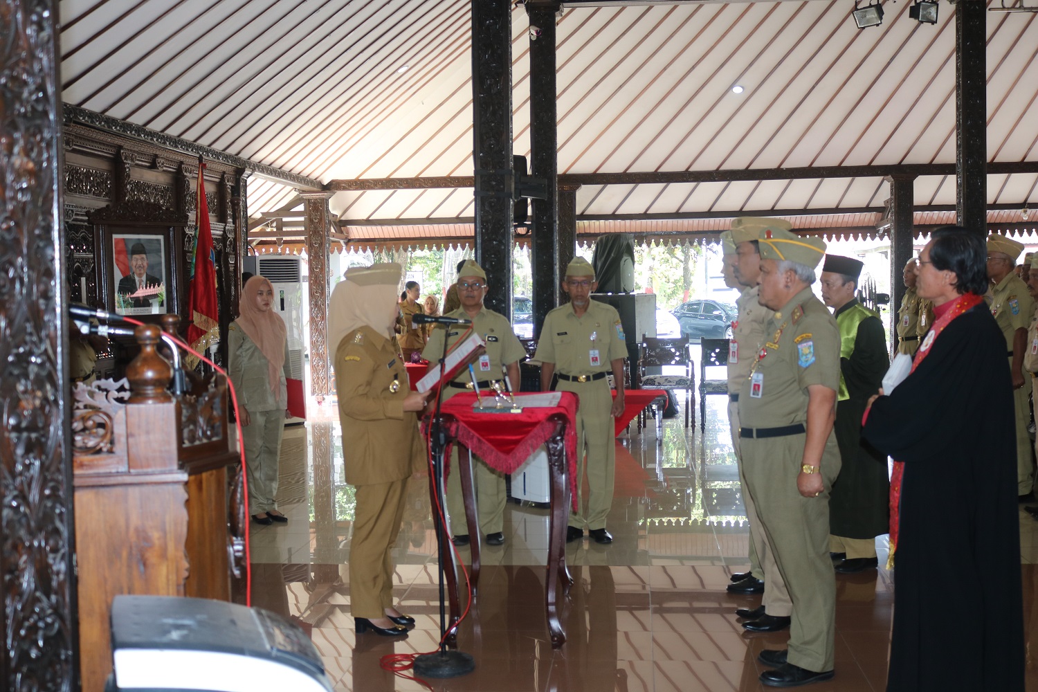 PURBALINGGA, INFO- 11 Pejabat tinggi pratama (Eselon II) di lingkungan Pemerintah Kabupaten (Pemkab) Purbalingga dilantik hari ini, Senin (13/5) di Pendapa Dipokusumo Purbalingga. Pengambilan sumpah jabatan dilakukan oleh Bupati Purbalingga Dyah Hayuning Pratiwi (Tiwi) yang disaksikan oleh Kepala DKPP Sediyono dan Kepala Dinporapar Yanuar Abidin.