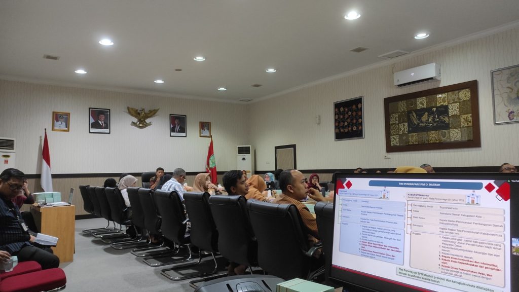 Kegiatan fasilitasi Zoom Meeting pada acara Sosialisasi Surat Edaran Menteri Dalam Negeri (SE Mendagri) terkait Penetapan Target Standar Pelayanan Minimal (SPM yang diselenggarakan di Ruang Rapat Bupati Kabupaten Purbalingga. Selasa (29/07/2025).