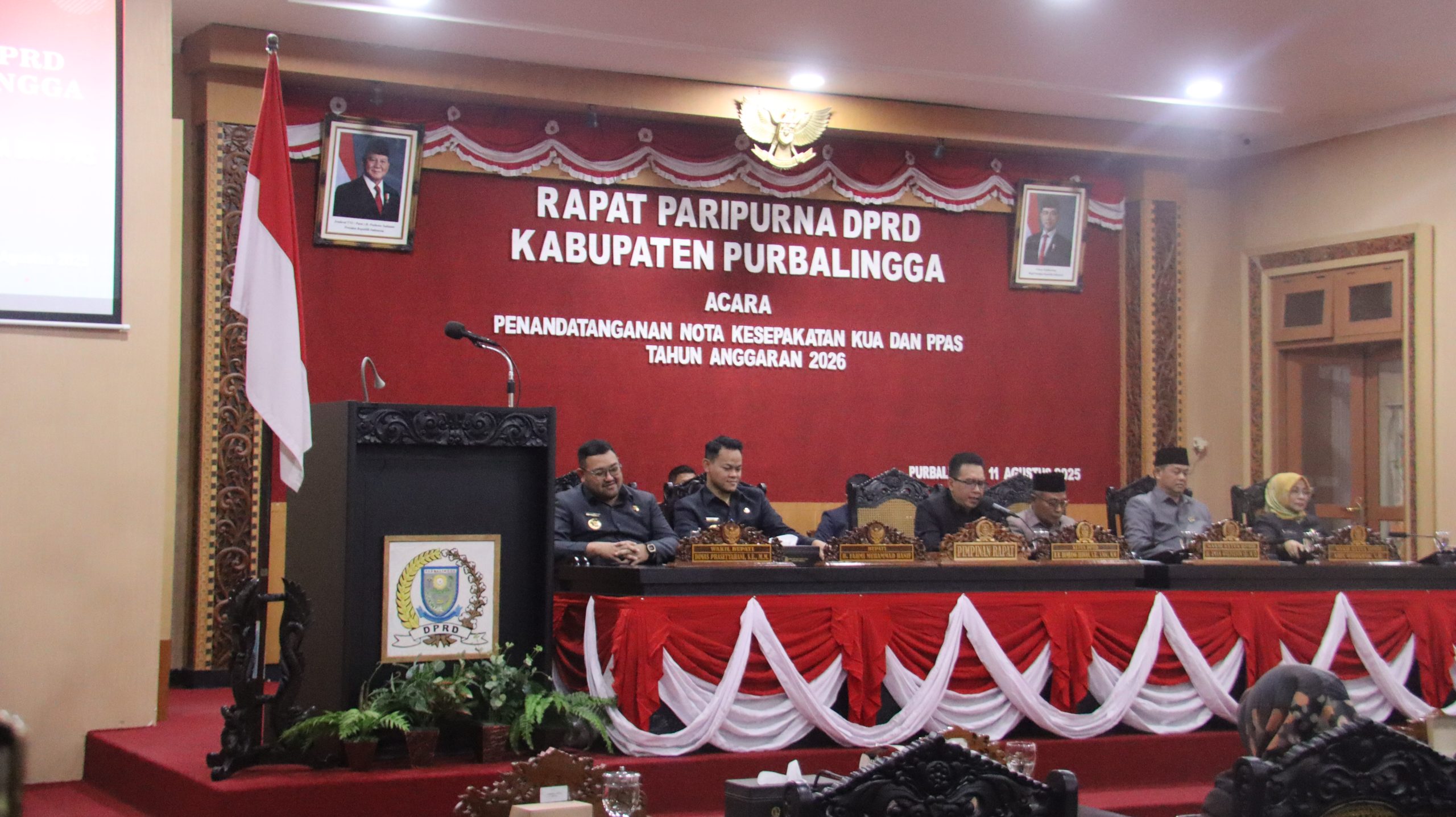 Kegiatan Rapat Paripurna DPRD Kabupaten Purbalingga dihadiri oleh Sadono, S.Sos., M.Si “Plt. Kepala Dinkominfo Kabupaten Purbalingga” dengan Penandatanganan Nota Kesepakatan KUA dan PPAS Tahun Anggaran 2026. Senin (11/08/2025).